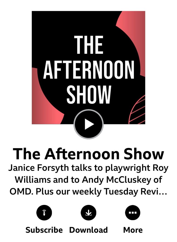 Link to radio clip below. About 8mins. Enjoy wee burst of classic Lady Marmalade at the start. And Janice Forsyth’s knowledge of song lyrics about jam.